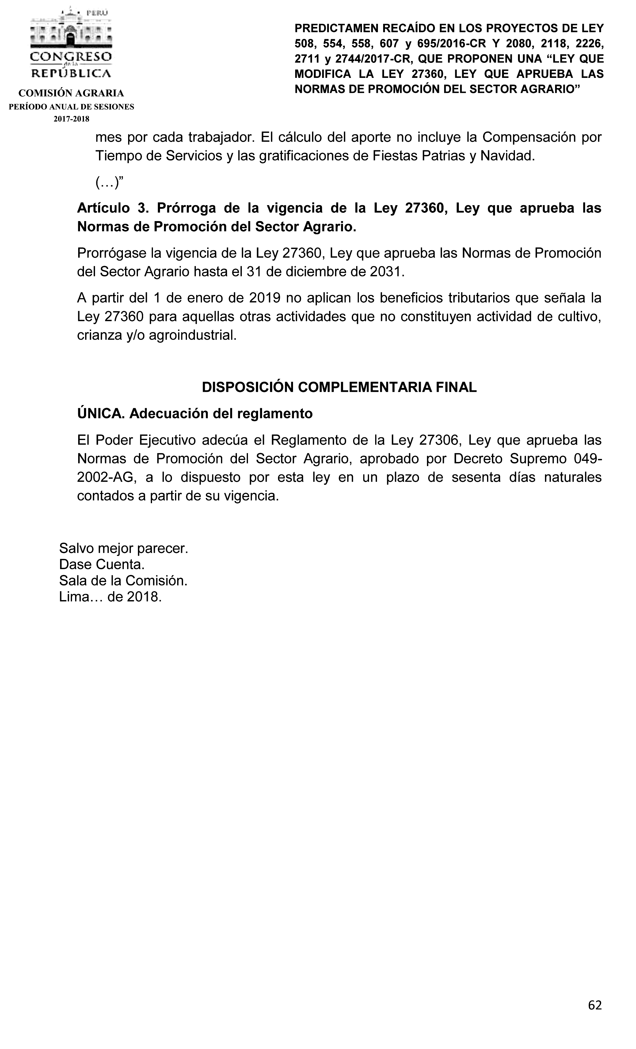 Mayoría fujimorista aprobó la prórroga de la Ley Agraria