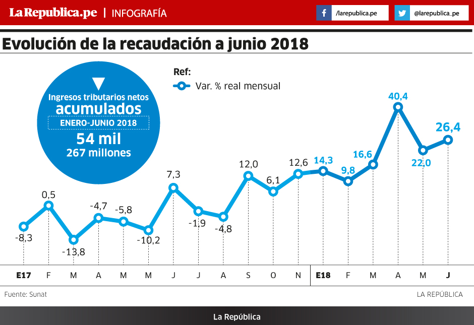 Recaudación creció 26,4% con ayuda del alza del ISC