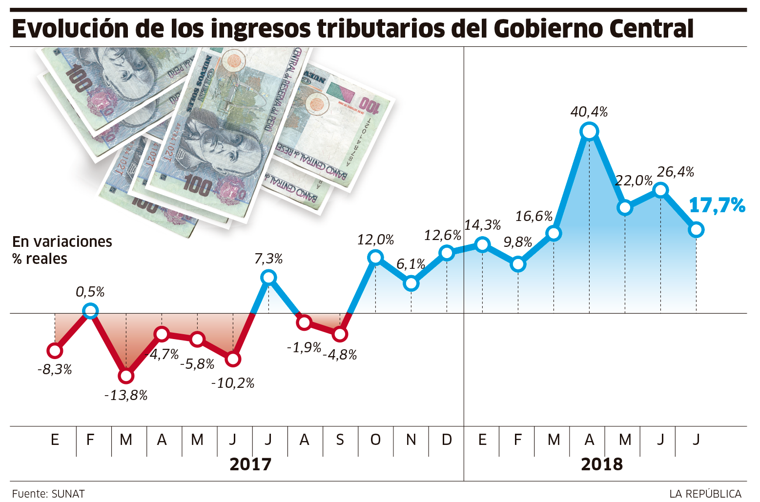 Sunat: la recaudación tributaria creció 17,7% en julio