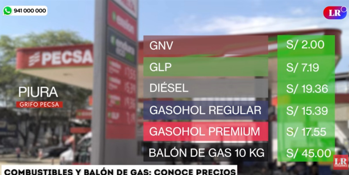 Así va la cotización de los combustibles y del balón de gas en el grifo Pecsa, ubicado en la intersección de las avenidas Miguel Grau y Chinchaysuyo.