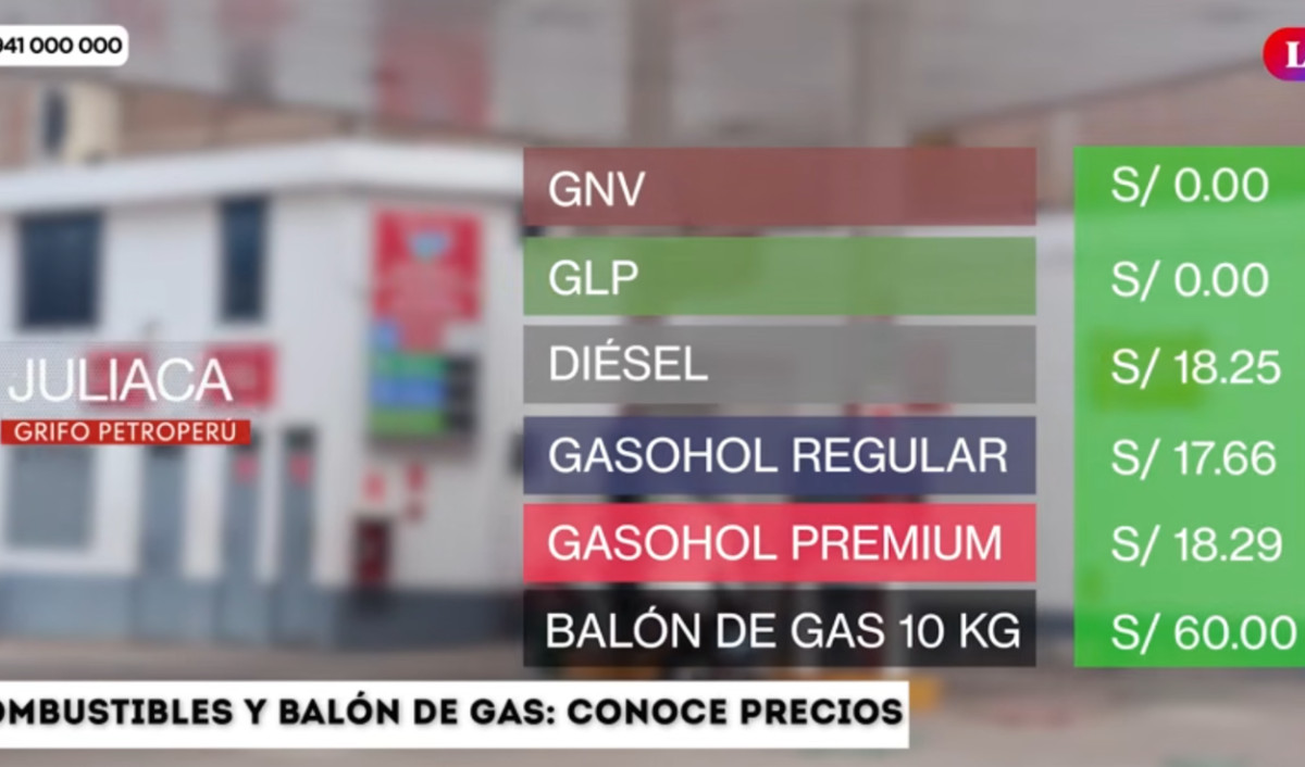 Así va la cotización de los combustibles y del balón de gas en el grifo Petroperú, en el distrito Gregorio Albarracín.