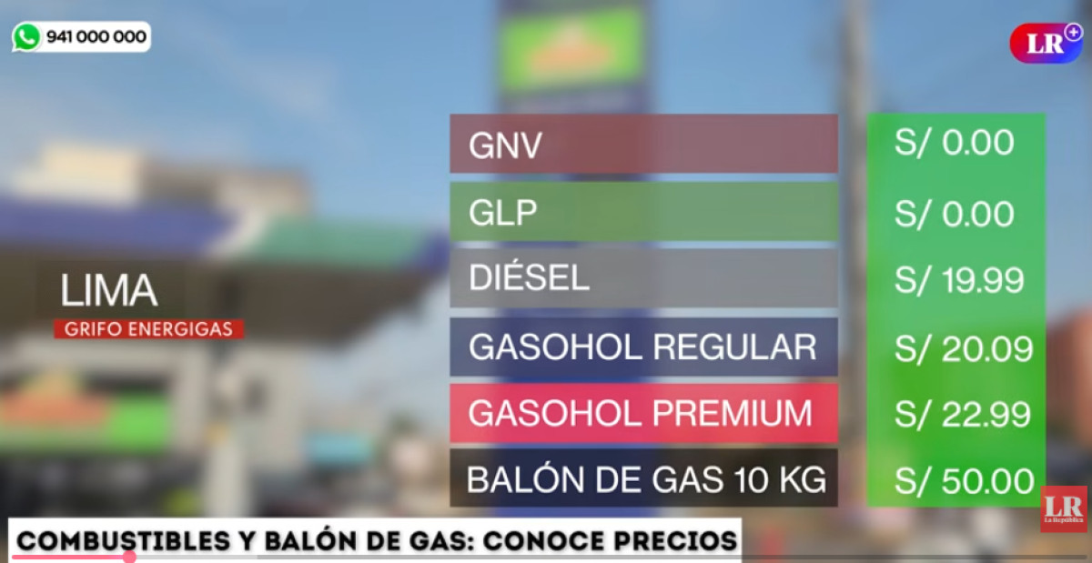 Así va la cotización de los combustibles y del balón de gas en el grifo Energigas, ubicado en el cruce de Tomás Valle.