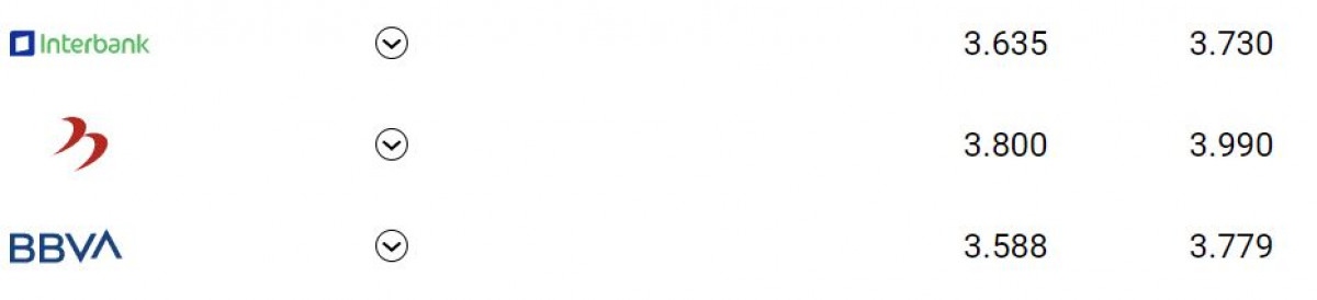 En BBVA, el dólar está S/ 3.588 la compra y S/ 3.779 la venta. En Scotiabank, está S/ 3.635 y S/ 3.730, respectivamente.