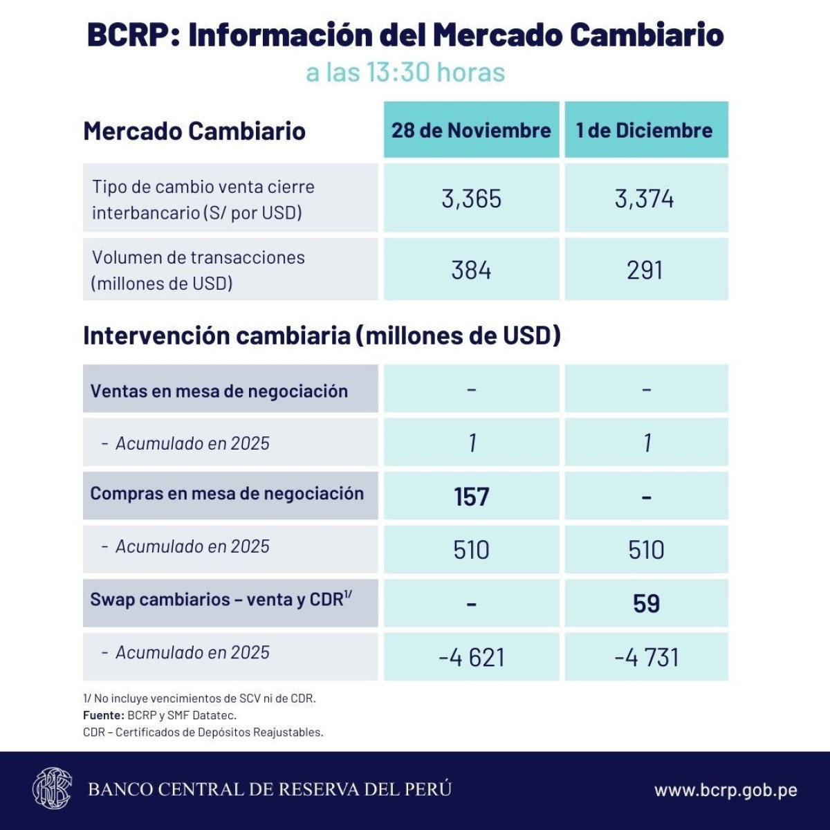 • Compra: S/3,357 • Venta: S/3,368