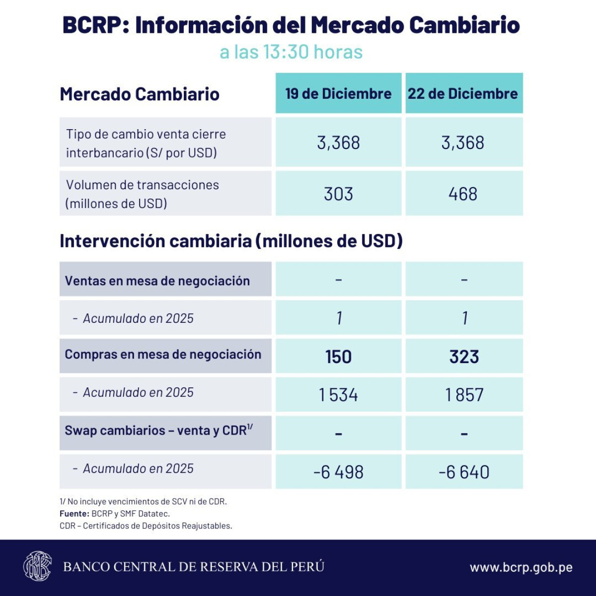 ¿Cuál es el tipo de cambio del dólar en los bancos del Perú HOY, 22 de diciembre?