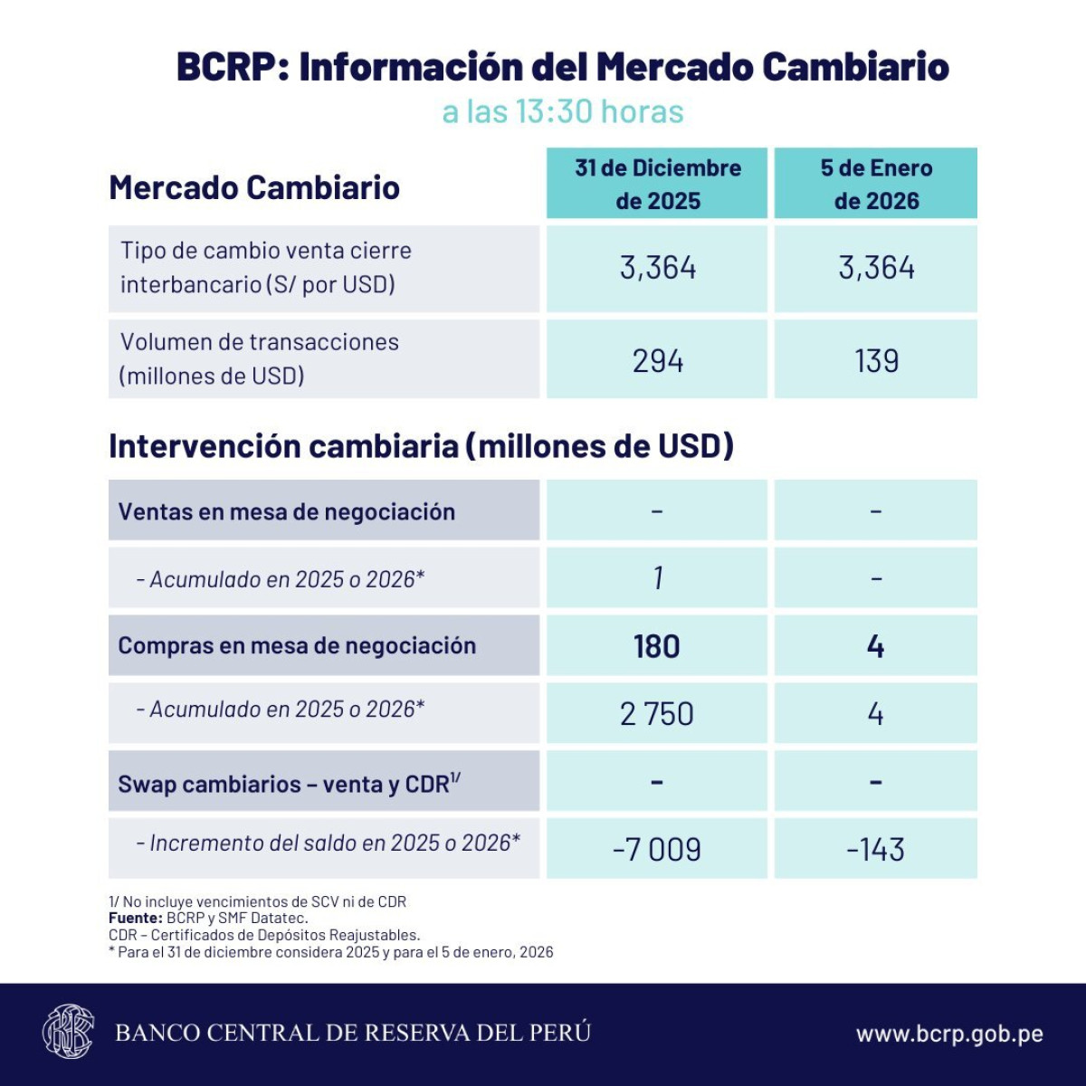 Cierre del tipo de cambio, según BCRP HOY, 5 de enero