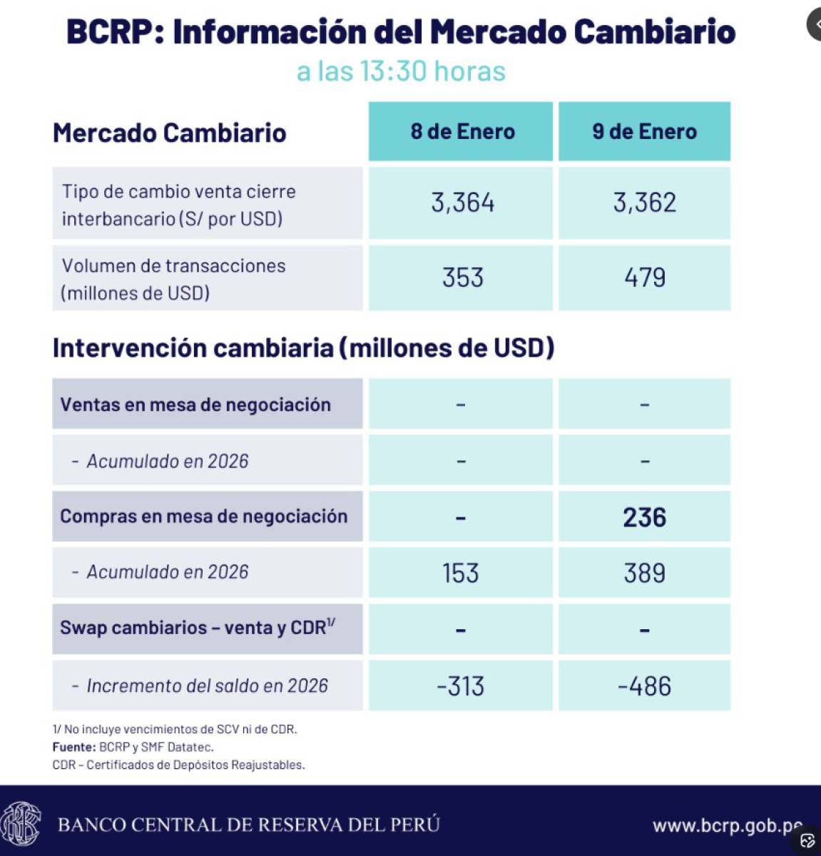 Cierre del tipo de cambio, según BCRP HOY, 9 de enero