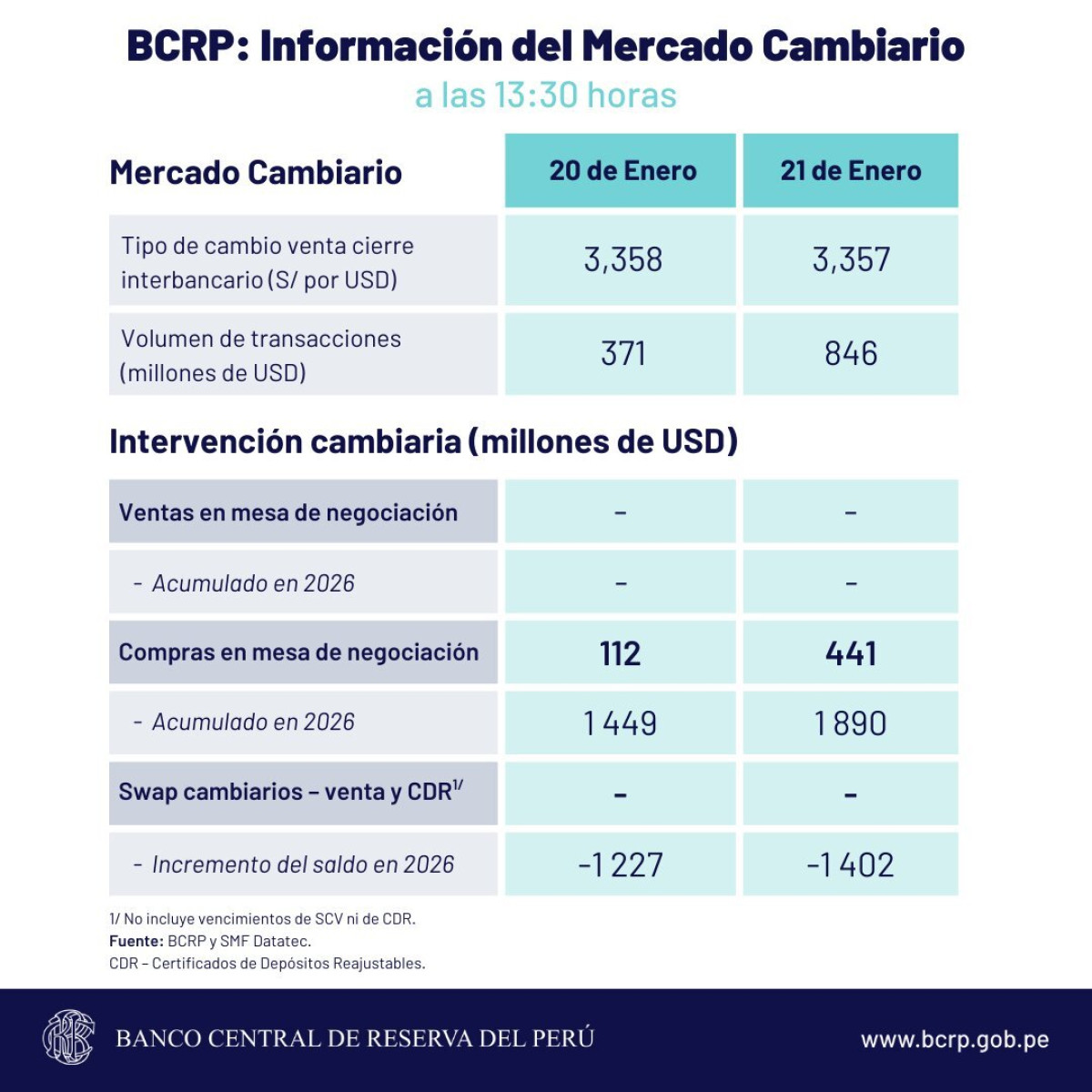 Cierre del tipo de cambio, según BCRP HOY, 21 de enero