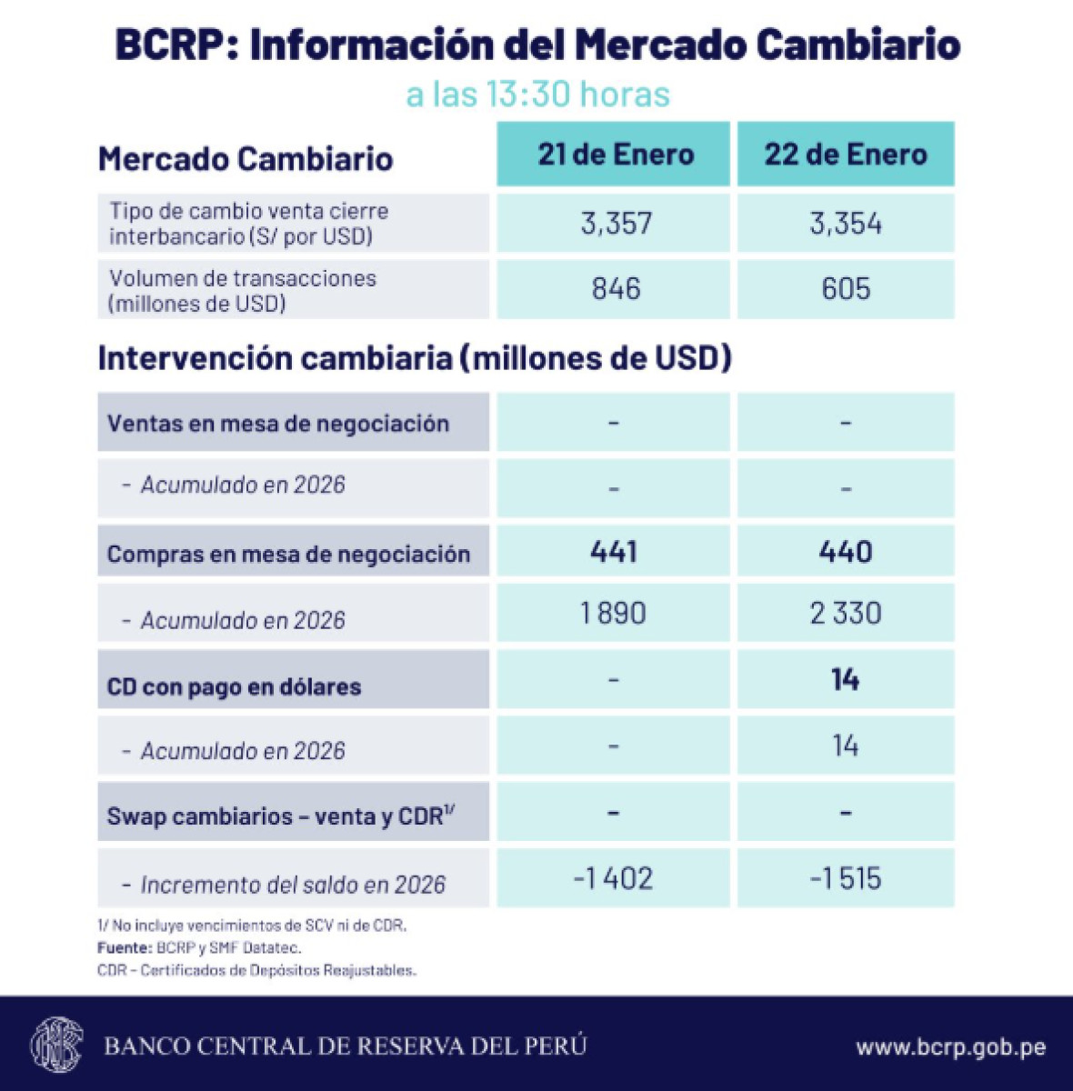 Cierre del tipo de cambio, según BCRP HOY, 22 de enero