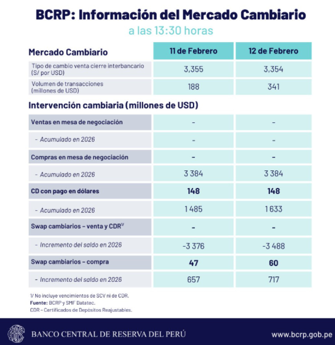 Cierre del tipo de cambio, según BCRP HOY, 12 de febrero