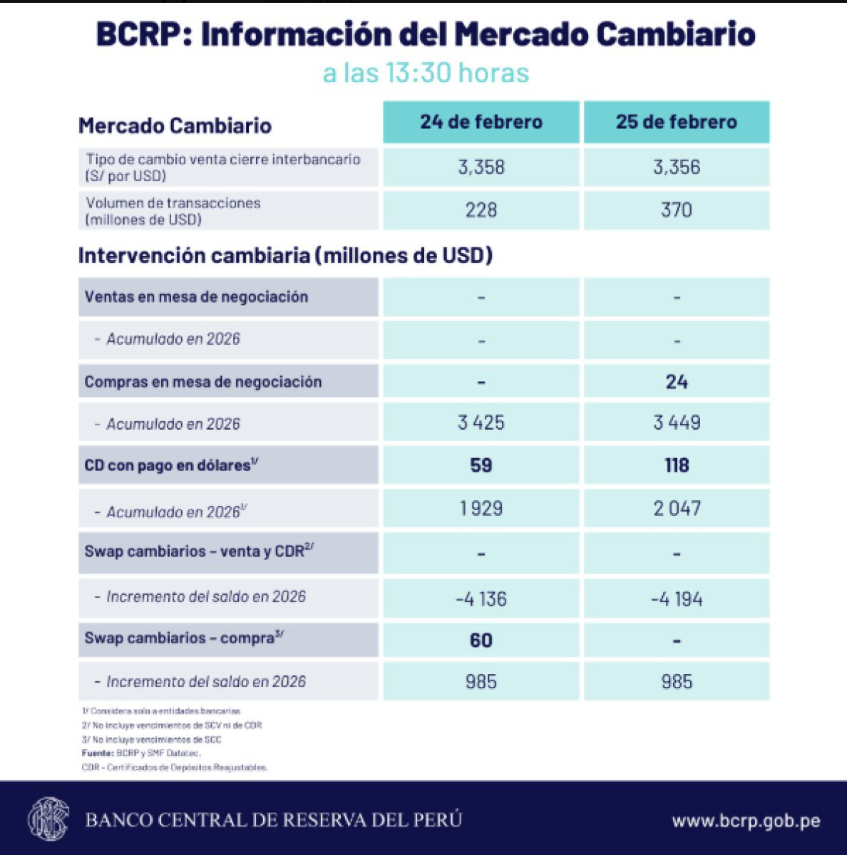 Cierre del tipo de cambio, según BCRP HOY, 25 de febrero