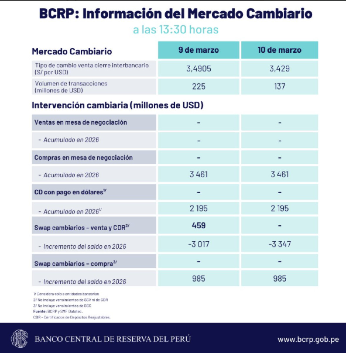 Cierre del tipo de cambio, según BCRP HOY, 10 de marzo