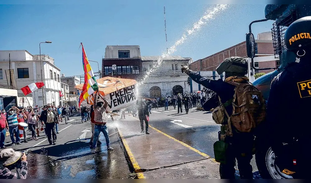 En Arequipa, simpatizantes de Perú Libre protestaron en el Centro Histórico. Las movilizaciones se realizaron pese al llamado de la Fiscalía de Prevención del Delito.