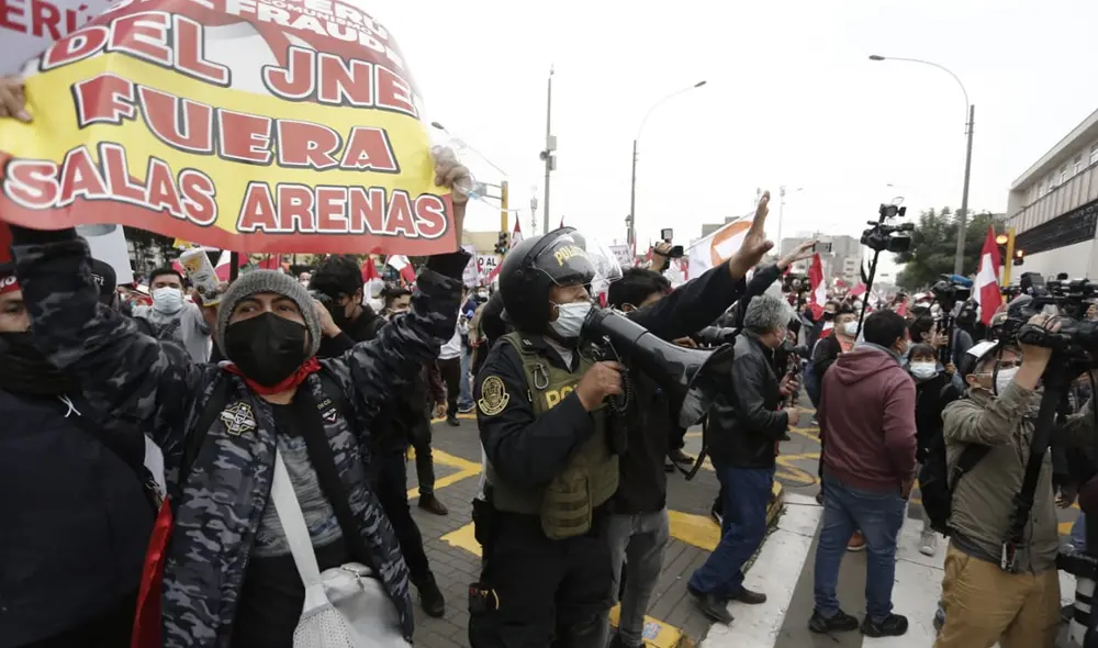 El reclamo vendría de personas que no están conformes con el resultado de la segunda vuelta electoral, que, según el conteo de votos al 100% de actas procesadas por la ONPE, dan como ganador al candidato de Perú Libre, Pedro Castillo.