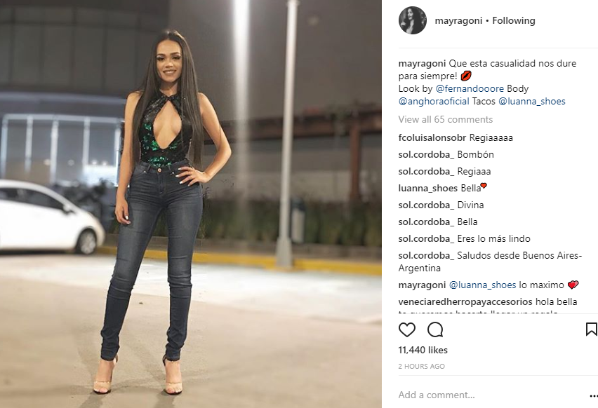 Mayra Goñi presume su cintura en ajustado body y amplio escote [FOTO]