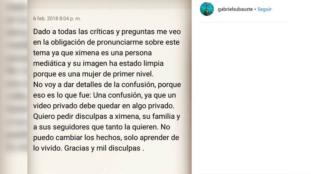 Enamorado de Ximena Hoyos se pronuncia en Instagram tras difusión de video íntimo