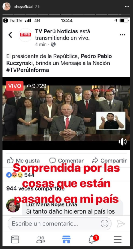 Instagram: Sheyla Rojas y su reacción tras renuncia de PPK