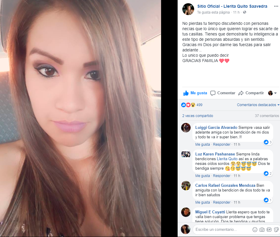 Llerita Quito responde a sus críticos tras ser retirada de Puro Sentimiento