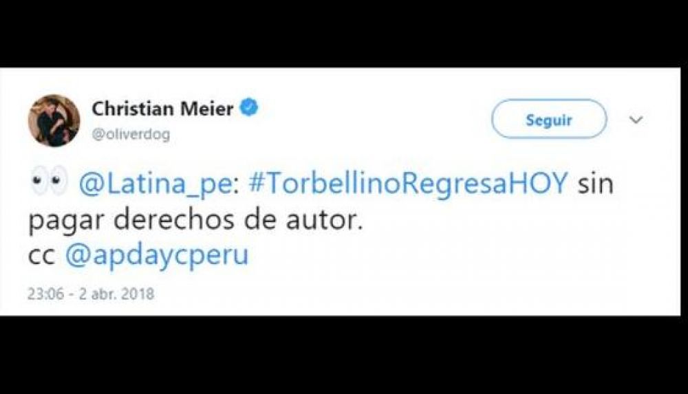‘Torbellino’ regresa a la TV y Christian Meier hace dura crítica en Twitter