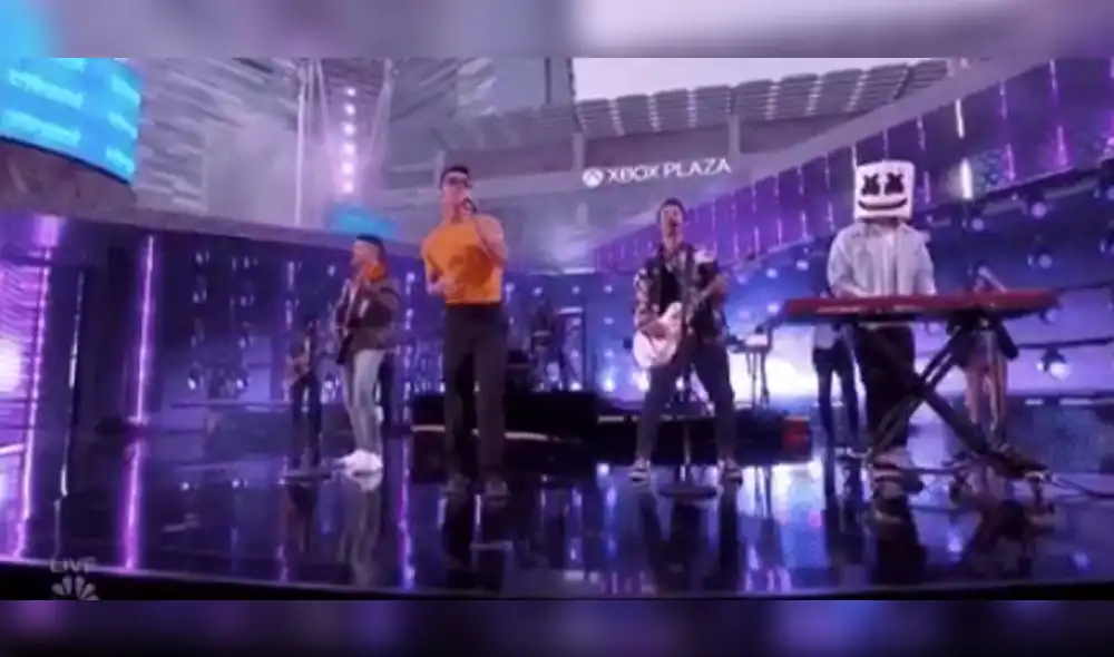La banda juvenil interpretó algunos de sus éxitos en compañía de Marshmello, quien estuvo en el teclado.