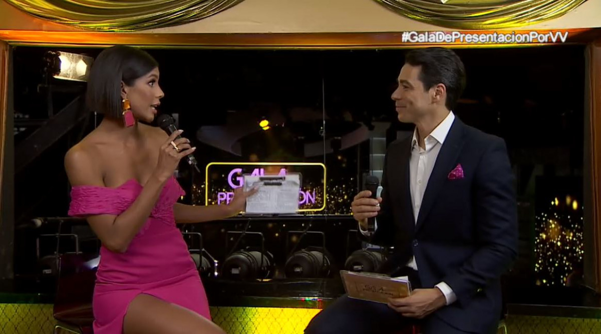 Los presentadores Isabella Rodríguez y Leo Aldana ya están en vivo en la Gala de Presentación de las 25 candidatas al Miss Venezuela 2023.