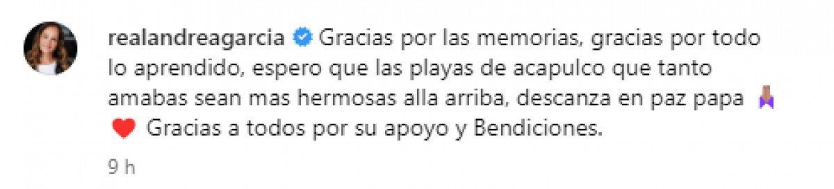 Andrea García, hija del fallecido actor mexicano Andrés García, utilizó su cuenta de Instagram para dar un mensaje de despedida a su padre.