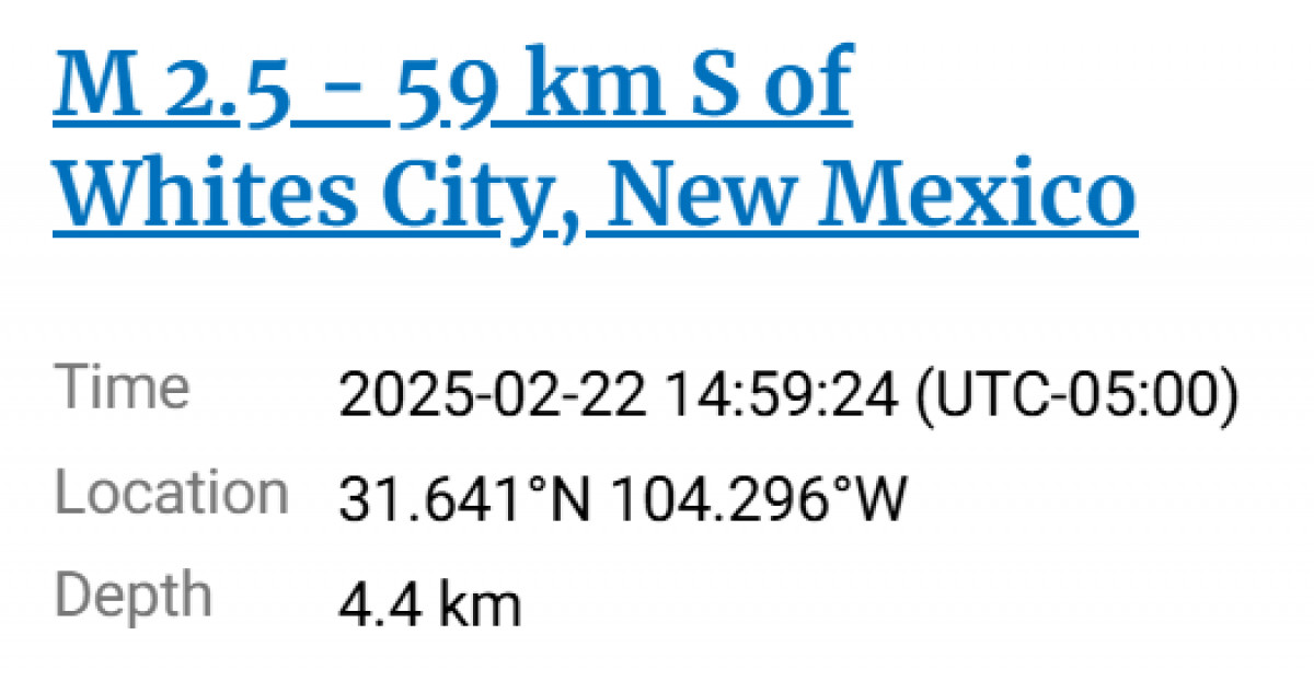 El Servicio Geológico de Estados Unidos (USGS, por sus siglas en inglés), reportó un último sismo en Nuevo México.
