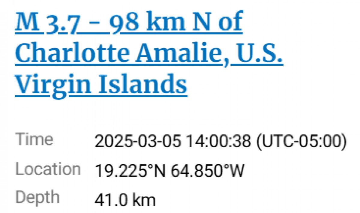Este miércoles 5 de marzo, se registró un sismo de 3,7 al norte de Charlotte Amalie, Virgin Islands, EE. UU.
