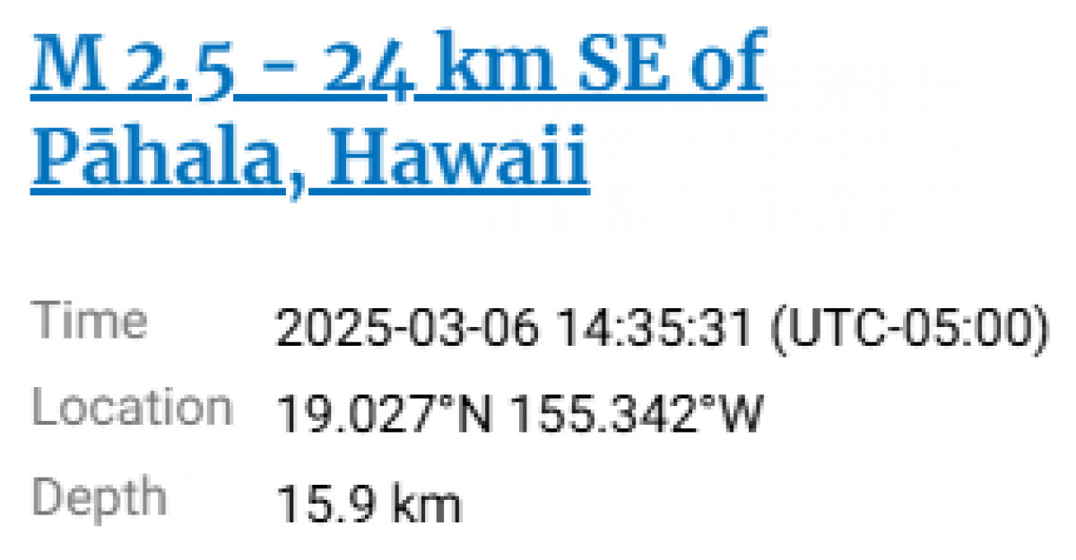 USGS reportó un movimiento telúrico de 2.5 en Hawái.