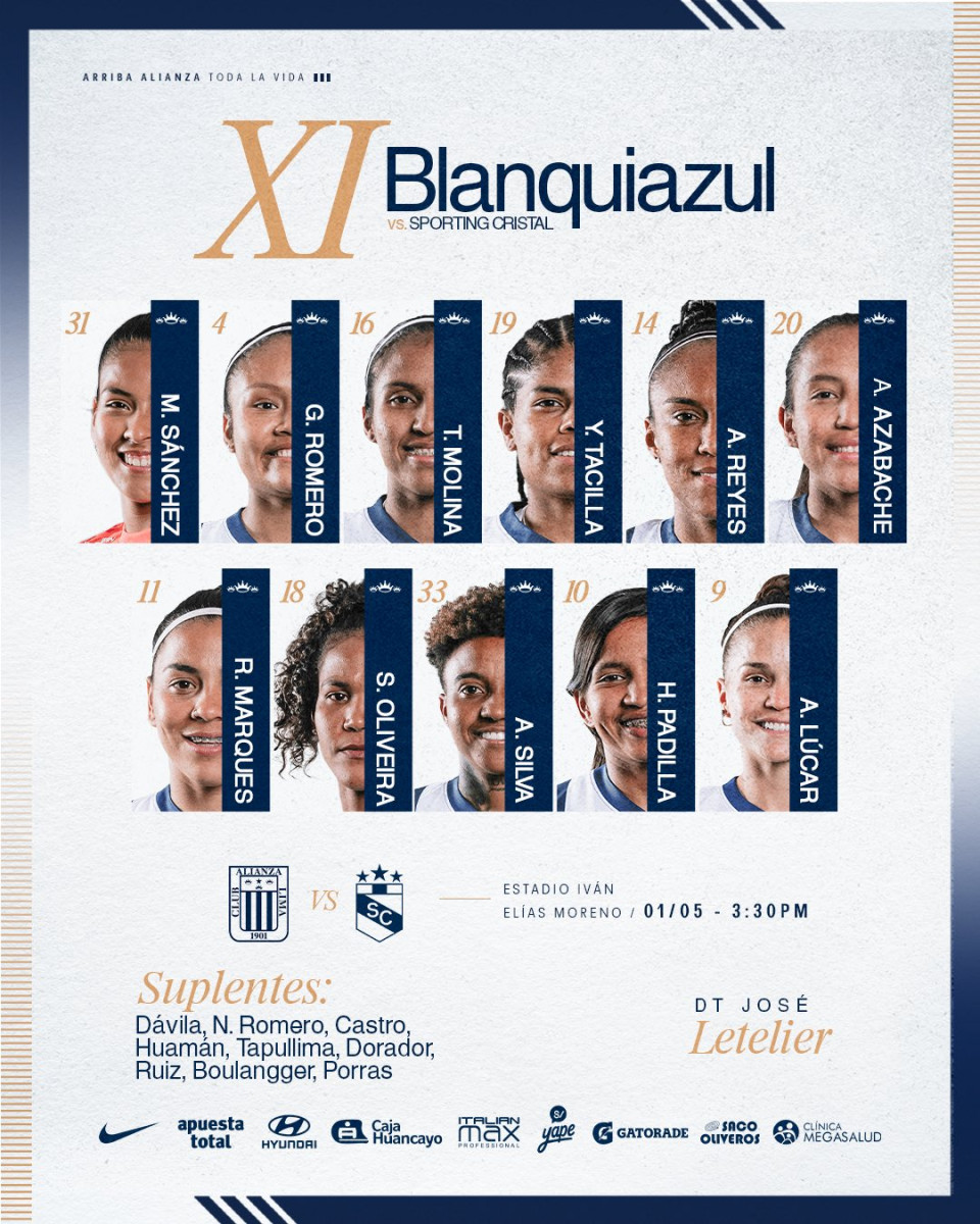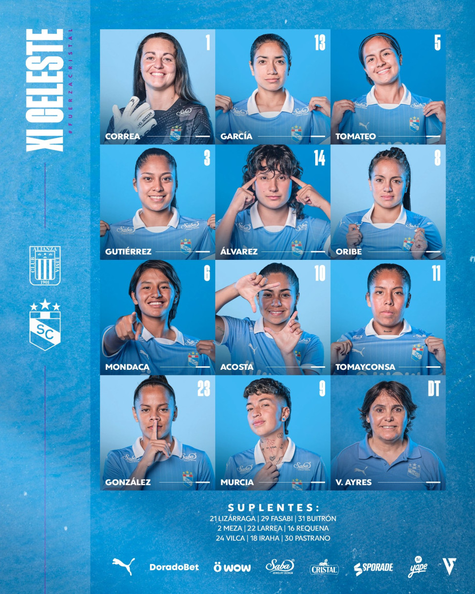 Este es el once inicial de las celestes. Foto: Sporting Cristal Femenino