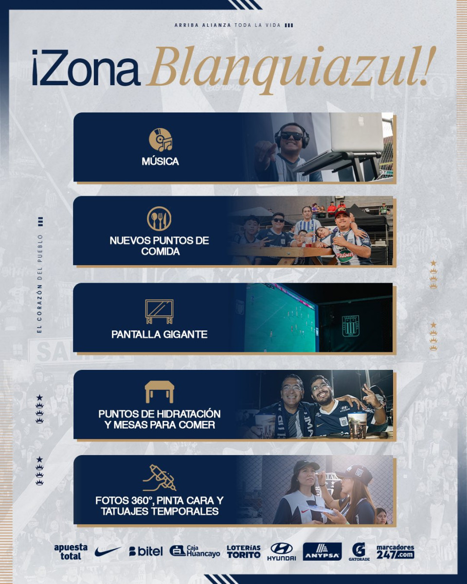 Estas son las 5 opciones que ofrece Alianza Lima a sus hinchas que asistan a la 'Zona Blanquiazul' en Matute en la antesala de lo que será el duelo contra Sporting Cristal. Foto: Club Alianza Lima