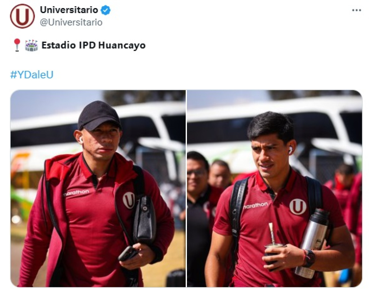 El plantel del club crema ya está en el estadio IPD Huancayo para el partido de esta tarde. Foto: captura de Universitario/X
