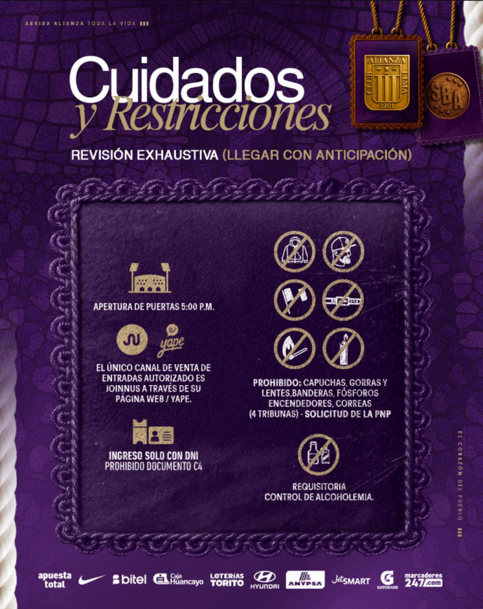 ¡Atención hinchas! Estas son algunas recomendaciones para que puedan disfrutar sin ningún inconveniente este gran encuentro.