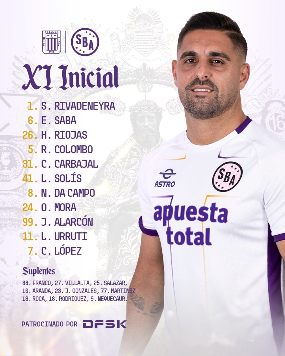 - Alineaciones Alianza Lima versus Sport Boys en Matute por la fecha 14 del Torneo Clausura 2025