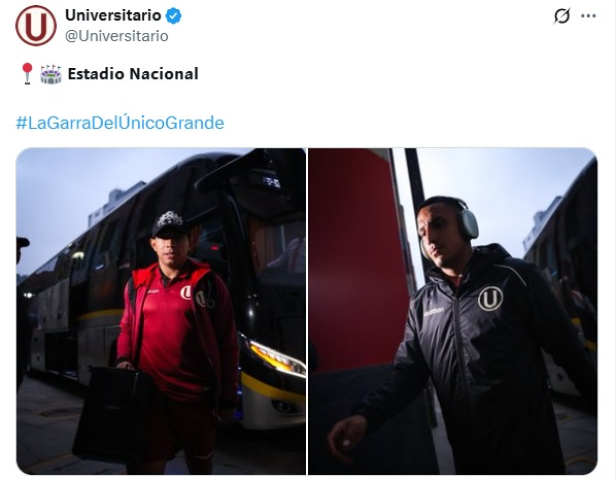 El plantel del club crema ya está en las instalaciones del Coloso de José Díaz. Falta una hora y media para el inicio de este partido. Foto: captura de Universitario/X