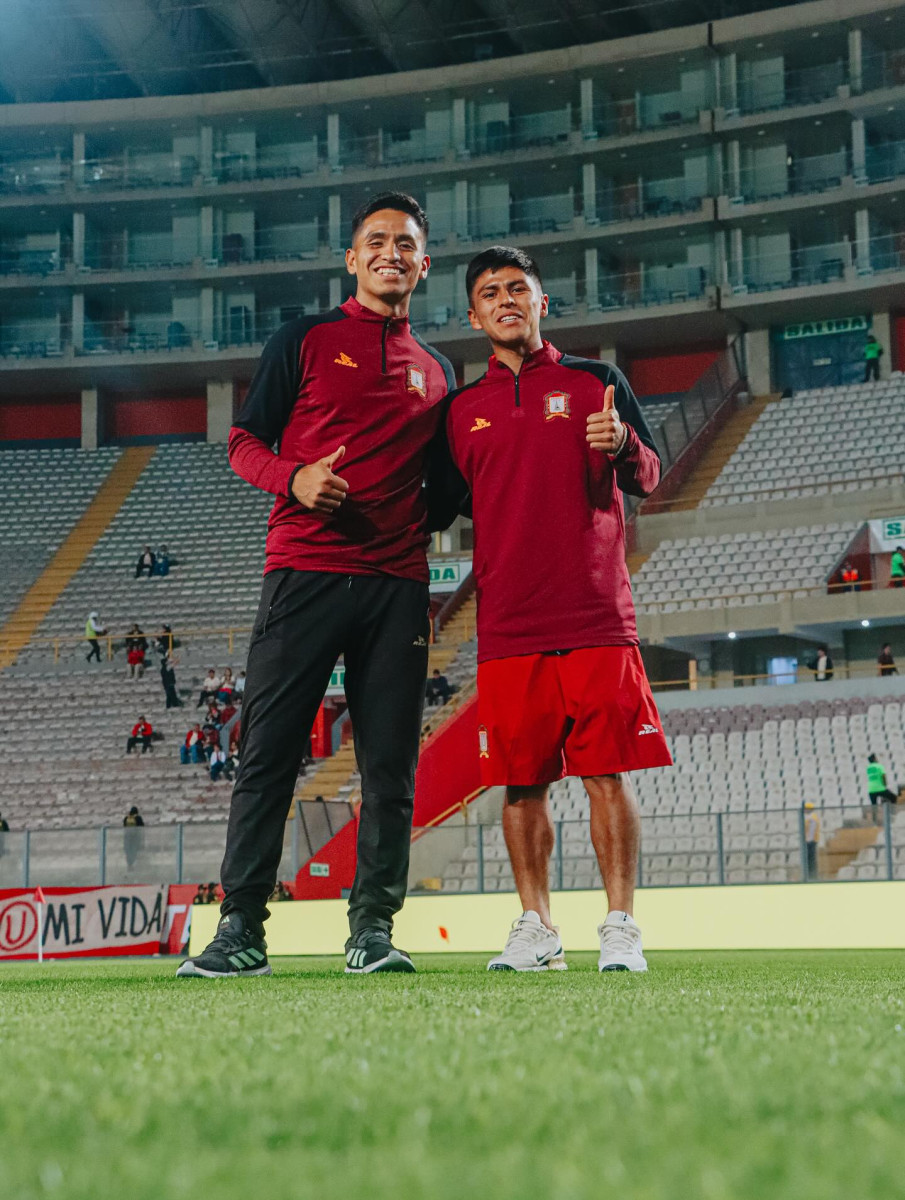 Los jugadores de ambos clubes ya realizan los trabajos precompetitivos sobre la cancha del Estadio Nacional. Fotos: Universitario/Ayacucho FC