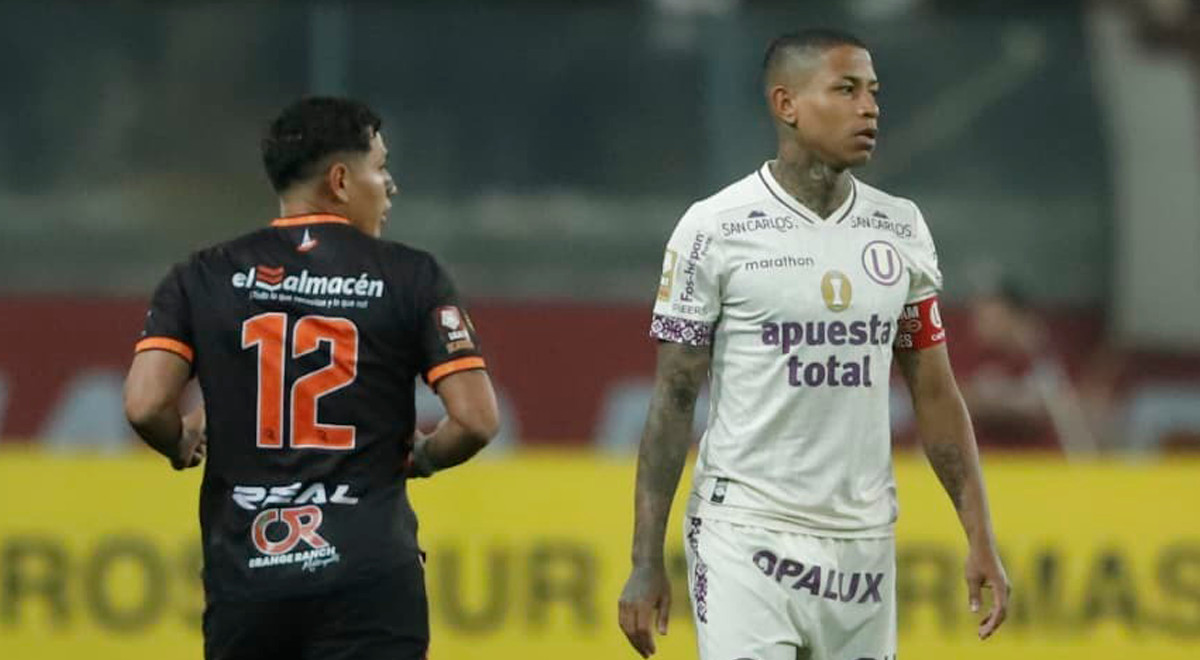Minuto 54. Anderson Santamaría jala de la camiseta y traba por abajo a Juan Lucumí. El árbitro Joel Alarcón cobra tiro libre para los zorros, pero no amonesta al defensa de la 'U' pese al reclamo de los zorros.