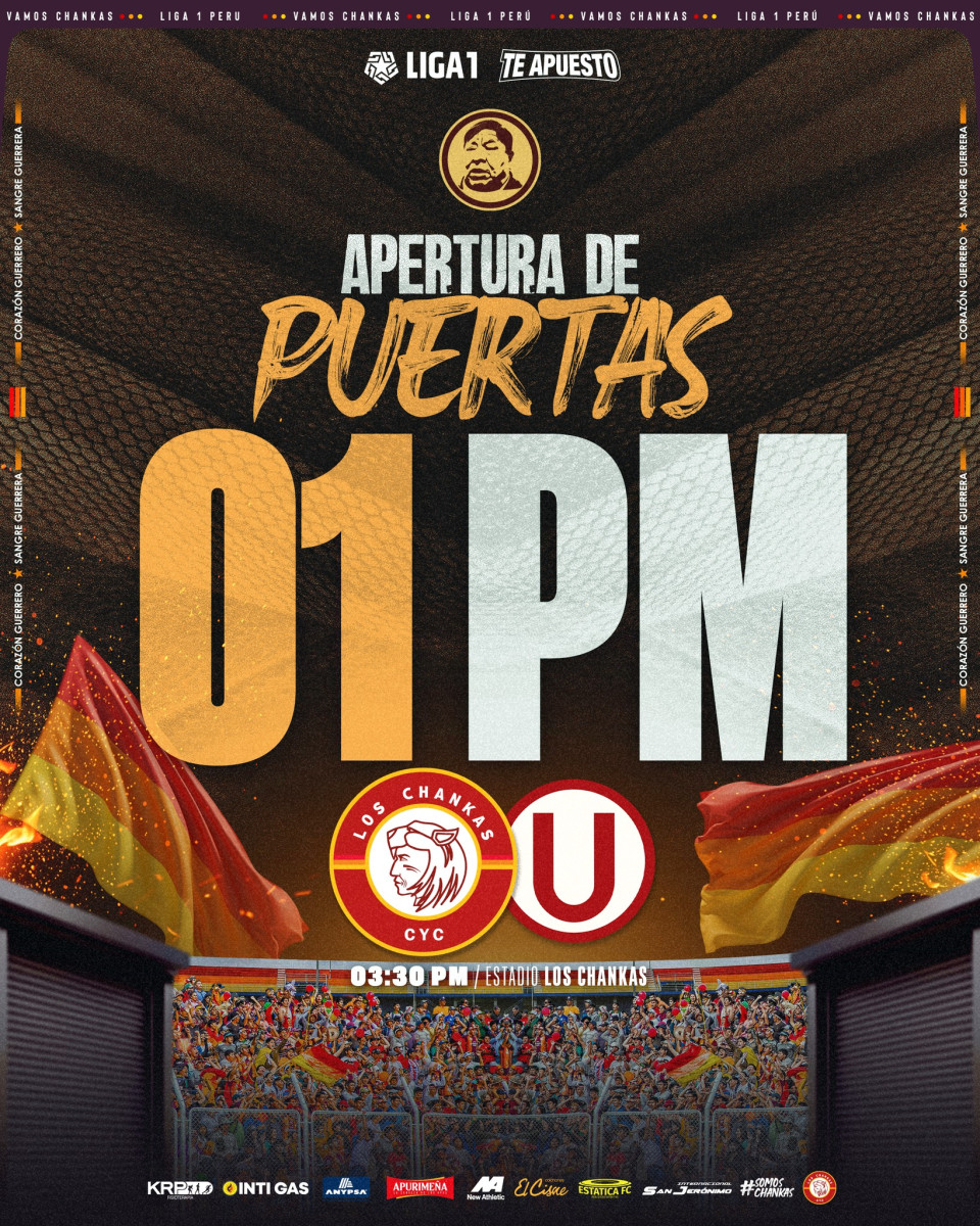 El compromiso entre Universitario contra Los Chankas por la fecha 19 del Torneo Clausura 2025 se disputará desde las 3.30 p. m.
