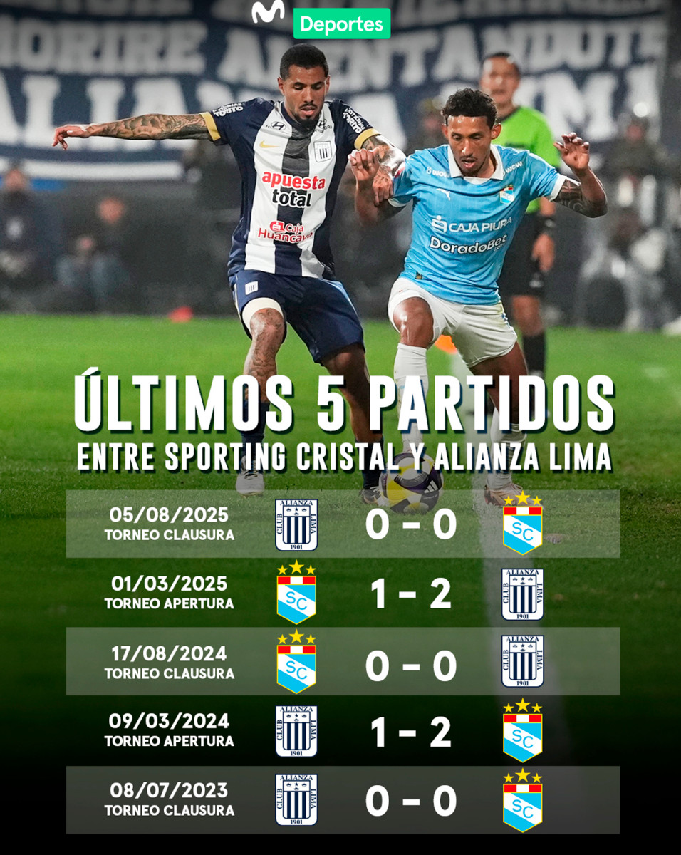 Así quedaron los últimos 5 partidos que disputaron Alianza Lima y Sporting Cristal. Foto: Movistar Deportes.