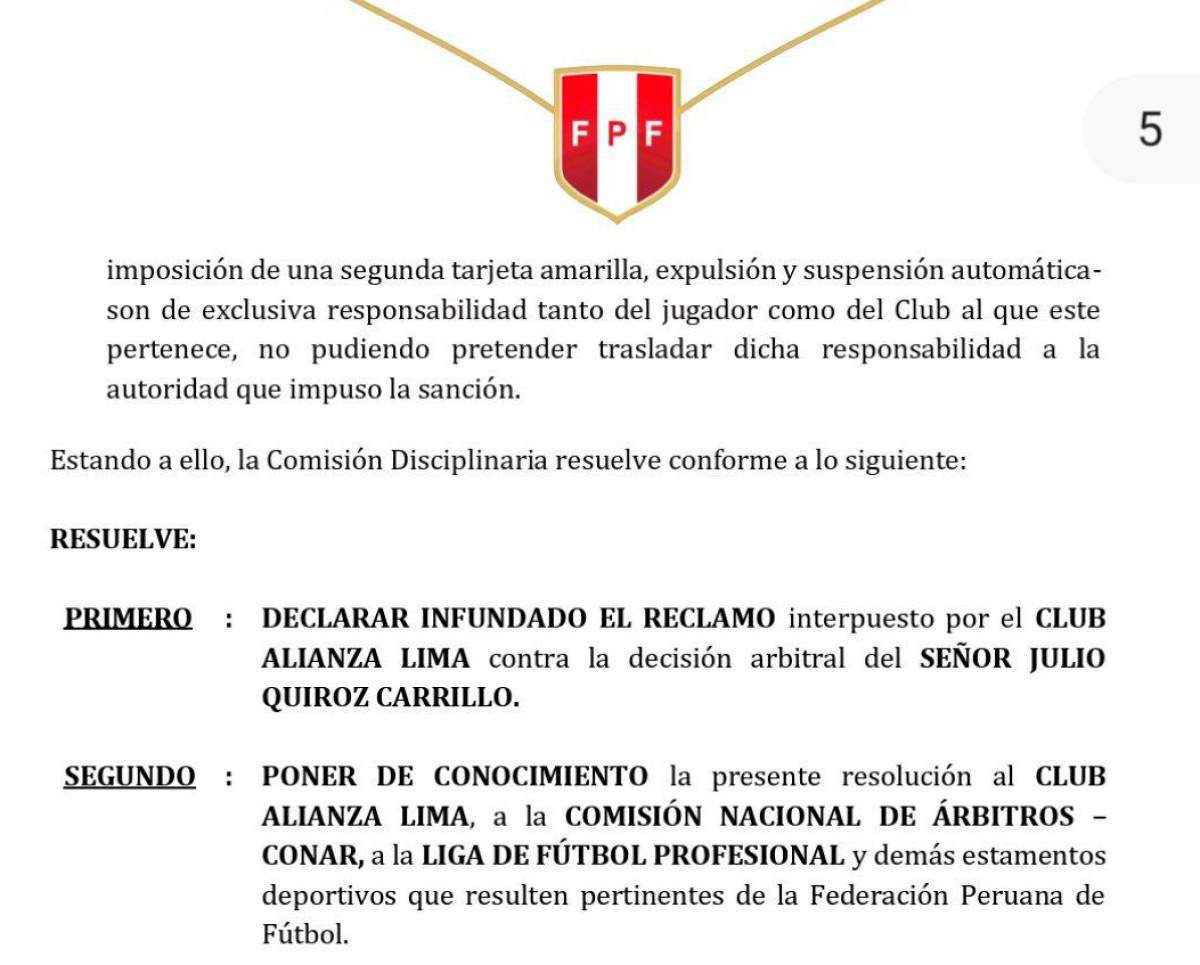 A horas del duelo ante Sporting Cristal, el organismo de la Federación declaró infundado el pedido de anulación de la roja de Carlos Zambrano. De este modo, no podrá jugar ante los celestes.