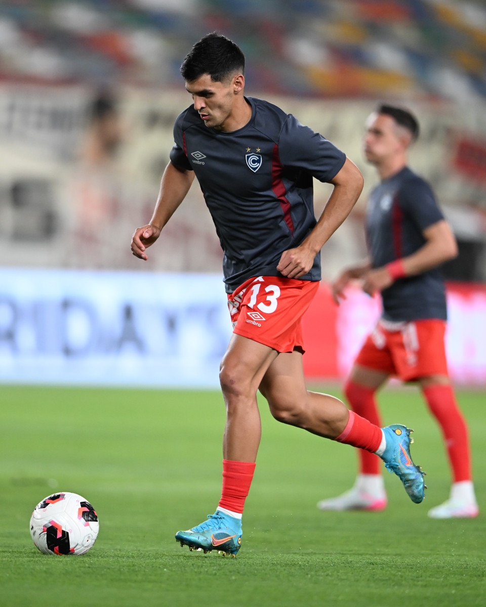 Minuto 39. Williams Riveros salta con los brazos extendidos y golpea a Carlos Garcés. El defensa ve la tarjeta amarilla.