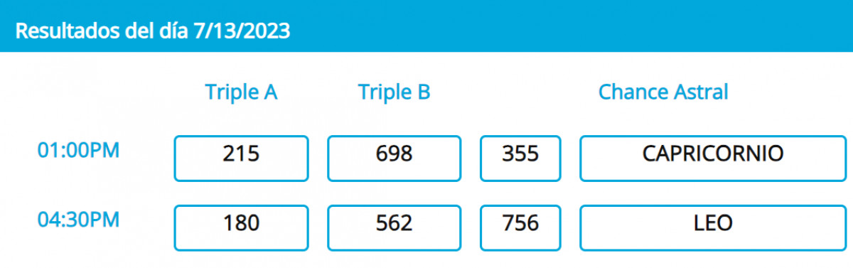 La lotería de números y signos se juega todos los días. Sigue AQUÍ los resultados de cada uno de los sorteos del Triple Chance EN VIVO de hoy, 13 de julio del 2023.