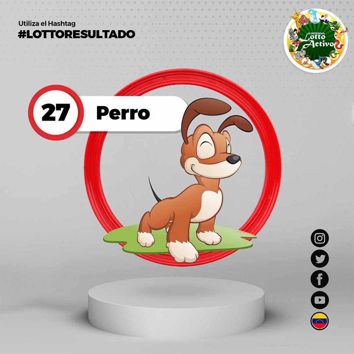 El número y animalito ganadores del sorteo de las 09.00 a. m. de Lotto Activo fue el (PERRO) junto con el número (27).