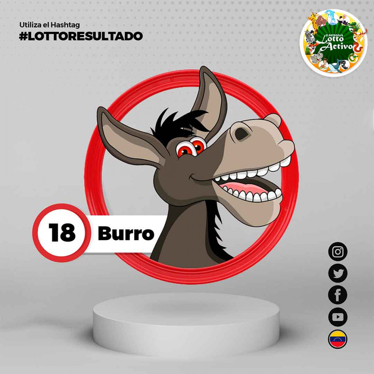 El número y animalito ganadores del sorteo de las 5.00 p. m. de Lotto Activo fue el (BURRO) junto con el número (18).