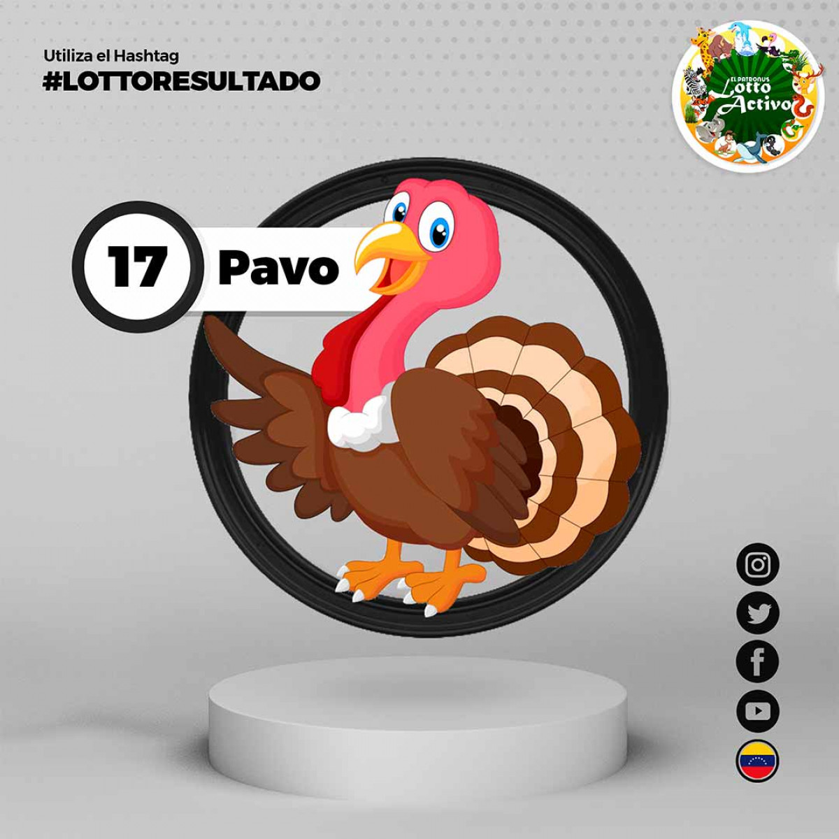 El número y animalito ganadores del sorteo de las 09.00 a. m. de Lotto Activo fue la (PAVO) junto con el número (17).