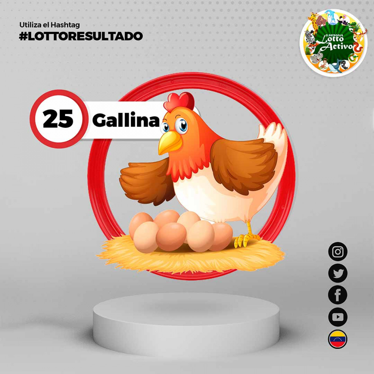 El número y animalito ganadores del sorteo de las 10.00 a. m. de Lotto Activo fue la (GALLINA) junto con el número (25).