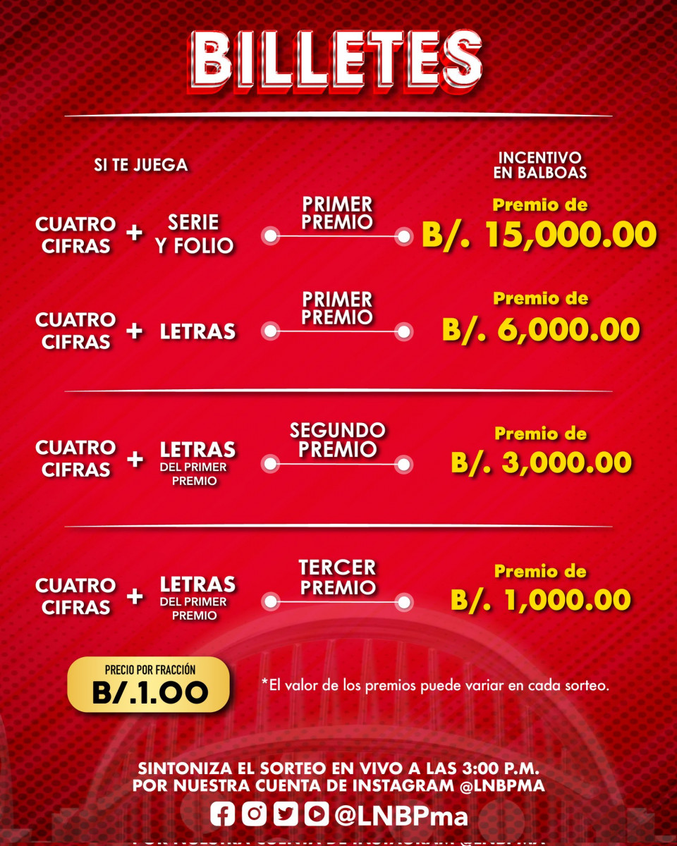 Con la Lotería Nacional de Panamá puedes ganar incentivosde hasta 28. 00 balboas.