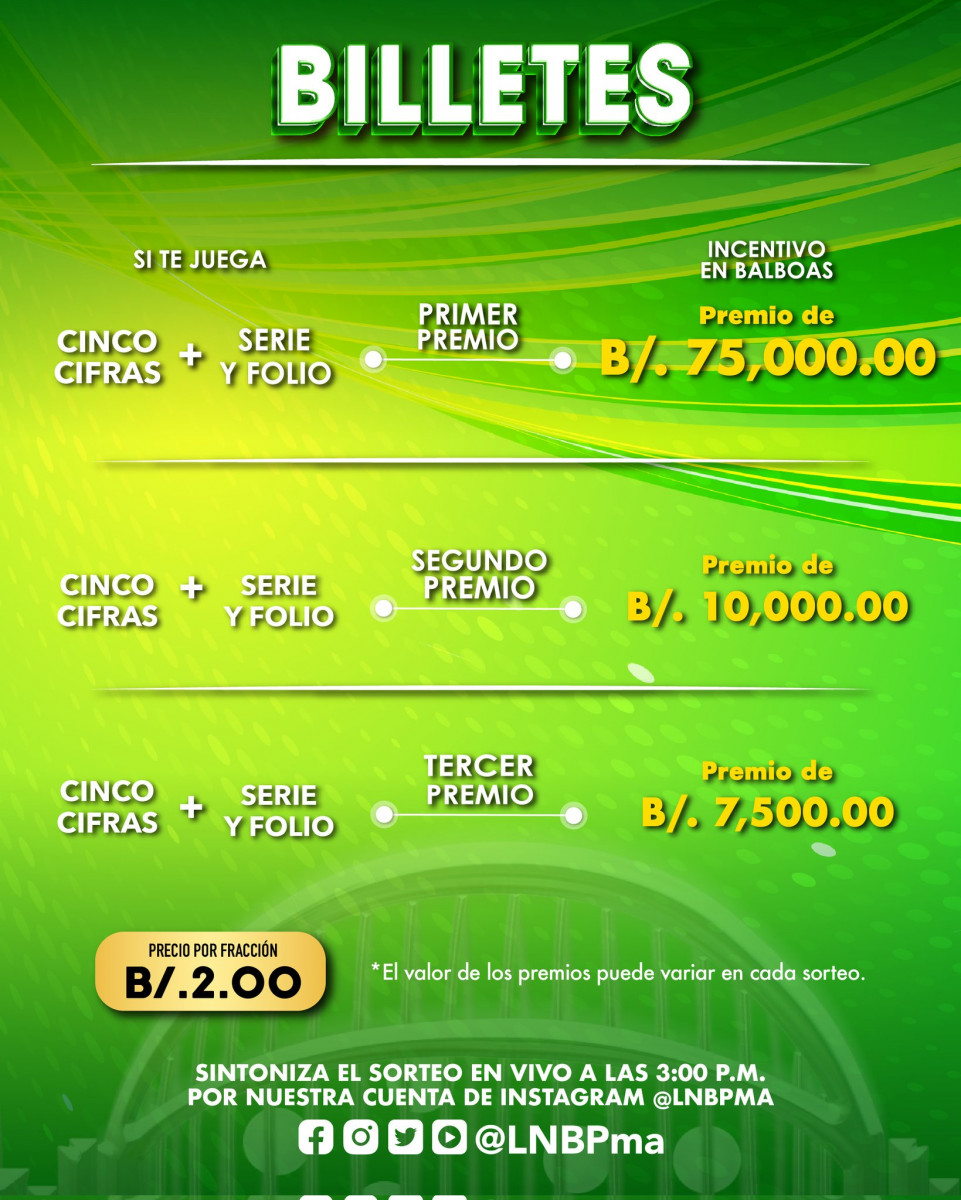 Estos son los premios que puedes ganar con la Lotería Nacional de Panamá.
