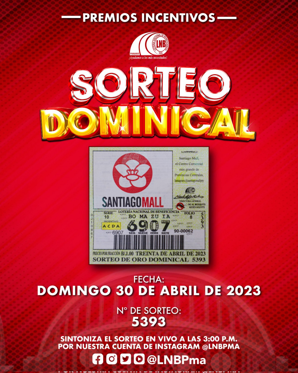 Por medio de un tuit, la Lotería de Panamá anunció que el sorteo no será transmitido por Instagram, pero sí por sus demás plataformas. Asimismo, recuerda que puedes seguir la programación del sorteo de HOY, 30 de abril, por La República.