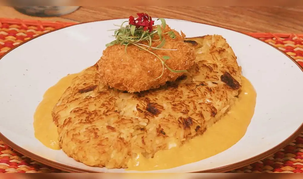 Para coronar, se agrega un huevo pochado crocante. El pochado es una técnica culinaria que permite cocinar ciertos alimentos en un líquido que no llega a hervir (nunca debe superar los 80 o 90 ºC), en especial, aquellos alimentos que no requieren hervir o cocinarse a altas temperaturas (como el pollo o el cerdo). Aquí, además de pochar el huevo, lo hemos pasado por harina, huevo batido y panko para agregarle un toque de crocancia.